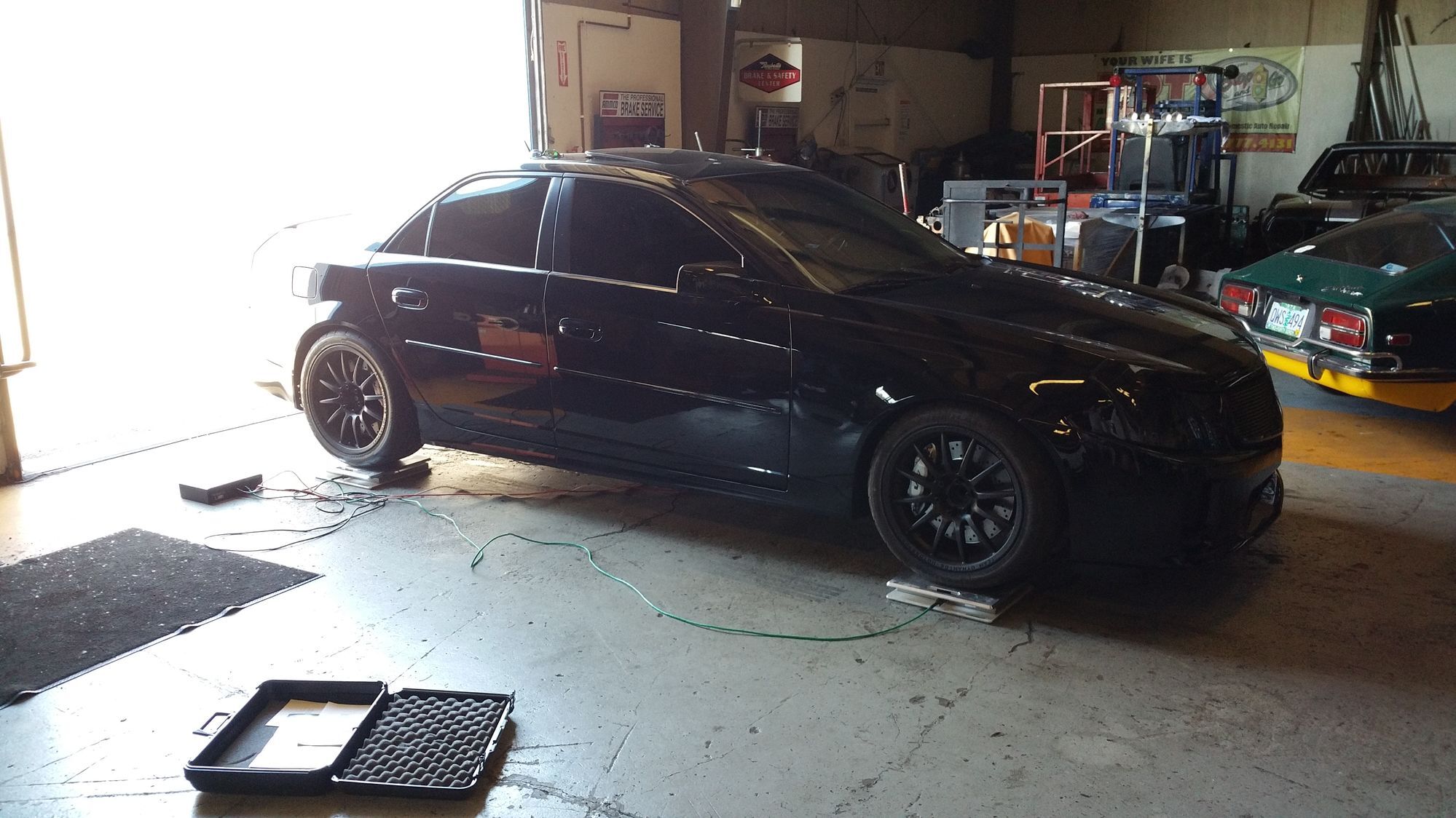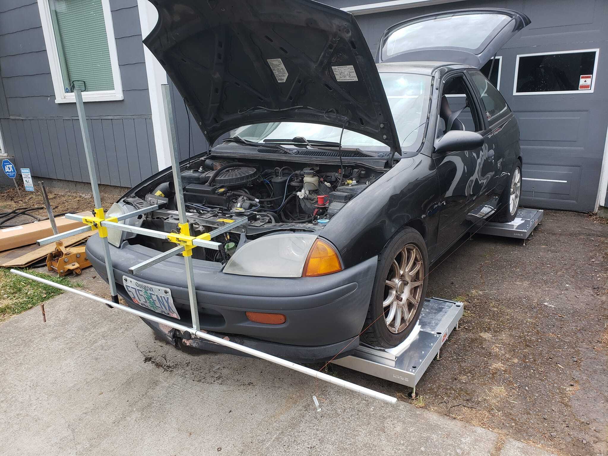 We offer access to equipment for doing corner balancing and alignments. At this time its only a mobile service. This is for cars only, the scales are high end Intercomp scales with a max weight rating of 5000lbs. We come to you! You need a fairly level concrete area big enough for you and your car. We will level the scales out and get them setup. Your in charge of getting your car on them and making any adjustments you wish to make. Generally you need to lift the car 6-8". We have a string alignment setup available for use while the vehicle is setup on the scales, we will help set it up, you make the adjustments to the vehicle. String alignments are very accurate but take a few hours to do, we have confirmed this with a laser alignment system.